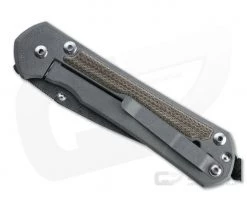 Chris Reeve Large Sebenza 31 Left Handed Natural Canvas Micarta Inlay Raindrop Damascus Drop Point