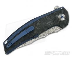 Reate Knives JACK Integral Damasteel Marbled Carbon Fiber Blue Titanium Frame Lock Flipper