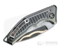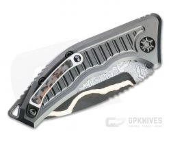 Heretic Custom Medusa Recurve Bakers Forge Damascus Frag DLC Titanium Automatic Knife 4731