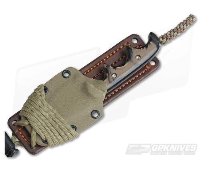 Sheath: Includes a custom molded Kydex sheath with paracord neck lanyard, cord lock, bolt-on belt hook and leather belt loop for multiple carry options.