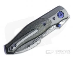Full-time custom maker and mentor Alan Folts is well known for eye-catching style and functional designs, including his custom and production Minimalist neck knives. The Utility folder is a straightforward liner lock design that is ideal for users while offering visual appeal for collectors. The U/W is a more compact version with a striking harpoon Wharncliffe blade perfect for urban carry. This piece comes with a Damasteel blade, blue anodized titanium liners and hardware, contoured carbon fiber scales with zirconium bolsters and a matching milled zirc clip.