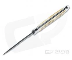 Blade: Pattern welded Damascus steel has been ground in a piercing clip point profile with a high hollow grind for solid performance. Torx construction allows for easy adjustment while bronze pivot washers deliver reliably smooth operation.