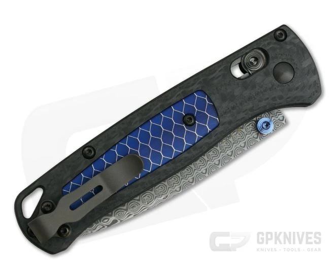 The 535-191 is a Gold Class version of the modern classic Bugout folder from Benchmade Knives. The Bugout was built to be one of the toughest, lightest folders in its class to go anywhere. This Unlimited Limited Gold Class version comes with a Munin pattern Damasteel blade, Ghost Carbon Fiber with Blue C-Tek inlay and Gray PVD coated liners.