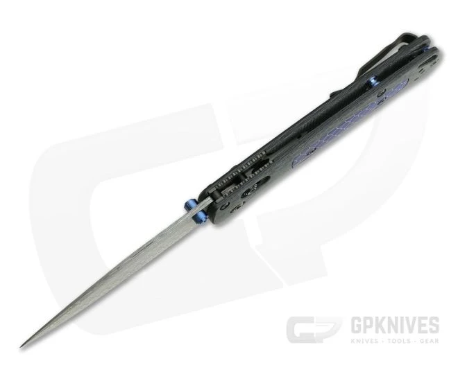 Handle: Ghost Carbon Fiber was chosen for its lightweight and durability along with a fantastic style and great feel in the hand. Even more striking is the Blue C-Tek inlay that complements the blue anodized thumb studs and barrel spacers. The open back construction is easy to clean and maintain and an oversize lanyard hole near the end is perfect for customization. The partial stainless steel liners are Gray PVD coated, blending into the background of this visually striking piece. Benchmade really stepped up the toughness with a DLC (Diamond-Like Carbon) coated titanium AXIS lock bar, delivering amazing durability in a feather-light 2.10 oz.