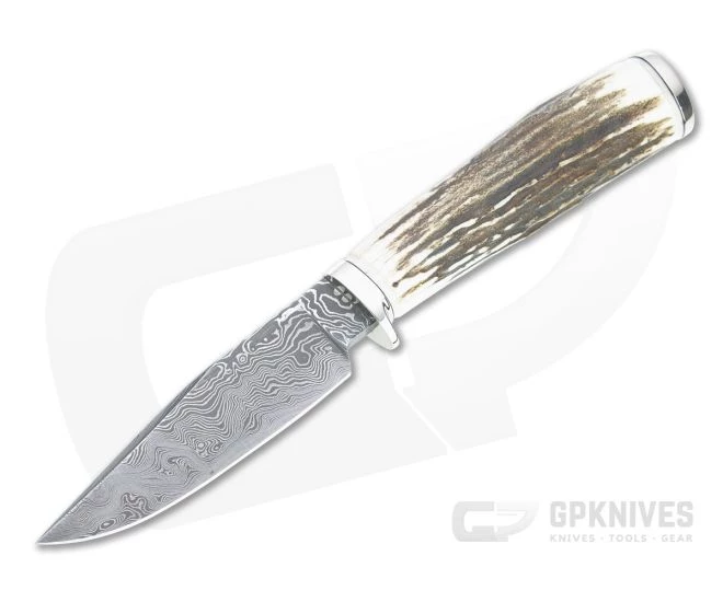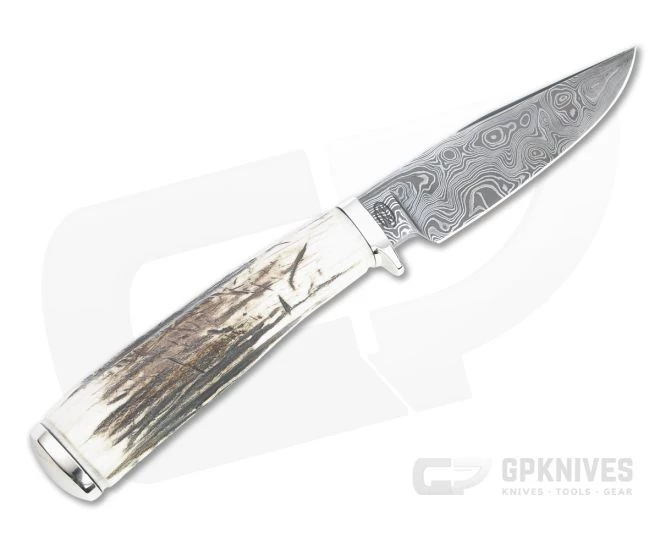Renowned for his stunning custom Damascus fixed blade hunters and fighters, Bill Miller A.K.A. WM Knives makes heirloom quality knives with timeless designs featuring hand forged Damascus blades. Elevating the visual appeal further, the knives feature elegant natural material handles, polished fittings and exotic leather and hide sheaths. This custom clip point hunter comes with a custom carbon Damascus blade and sambar stag handle.