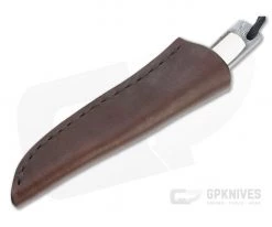Handle: Full tang construction is rugged and well-balanced supporting handsome, polished fossilized walrus ivory with the spine riding proud for a more contoured and comfortable feel. Tapering down from a broad pommel the hand is very secure with a subtle index guard for safety. The attached lanyard assists with drawing the knife.