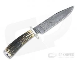 Renowned for his stunning custom Damascus fixed blade hunters and fighters, Bill Miller A.K.A. WM Knives makes heirloom quality knives with timeless designs featuring hand forged Damascus blades. Elevating the visual appeal further, the knives feature elegant natural material handles, polished fittings and exotic leather and hide sheaths. This custom Fighter comes with a custom carbon Damascus blade and sambar stag handle.
