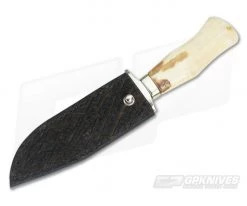 This handsome fixed blade knife was hand made by Bill Miller and the result is an exquisite combination of Fossilized Walrus Ivory and hand forged damascus. Perfectly balanced and super comfortable in the hand, this looker can do the business when called upon. Brand new direct from maker.