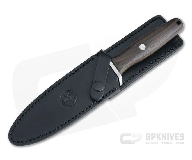 Handle: Mounted to the full tang blade are rugged smoked chestnut wood handles with a black spacer separating them from the silver double guard. Chestnut scales are used in tribute to the chestnut tree which grew on the original factory grounds and from which the classic tree logo was derived. The front scale is embellished with the Boker Tree Brand Shield in silver.
