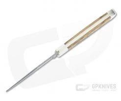 Nichols Stainless Damascus: Stainless Damascus offers the performance of a modern stainless steel with the striking look of etched, pattern welded steel. Composed of AEB-L and 304, Nichols’ stainless Damascus delivers excellent corrosion resistance and toughness with good hardness for edge retention.