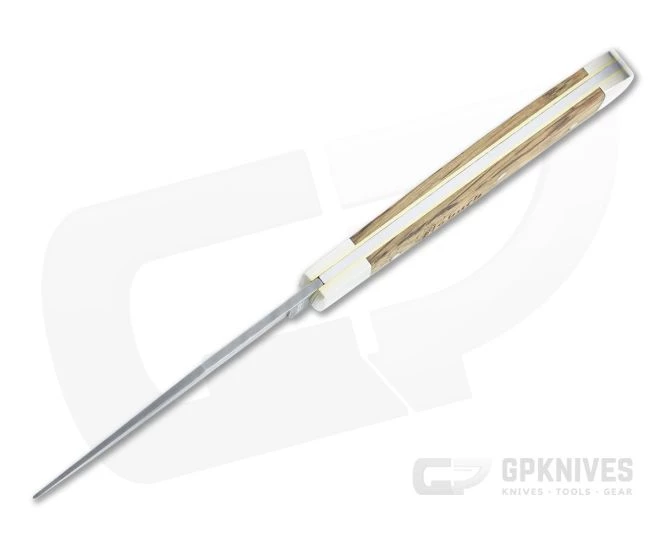 Handle: Mounted to brass liners with brushed nickel silver pins and bolsters the brandy barrel oak wood covers offer a warm feel with a beautiful, rustic aesthetic. Forgoing a traditional shield, the front cover has been engraved “Asbach” for the brandy that gives this Trapper its name. A stainless steel back spring delivers smooth, snappy slip joint operation. Includes high-quality felt zipper pouch and numbered certificate of authenticity.