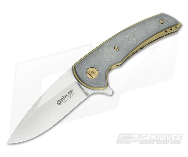 A Special Run new flipper known as the Model 13 this way comes from the mind of maker Les Voorhies and built with pride in Germany by Boker Knives. Some very desirable components in the Model 13 and just a joy to flip. Damascus slabs, Titanium and Bearings. You betcha!