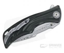 Blade: The Damasteel blade glides on Brian’s STBS (Sealed Thrust Bearings System) for some of the smoothest operation on the planet and deploys via dual thumb studs or the index flipper. A compound ground Harpoon tip blade provides an excellent combination of strength and cutting performance as well as strong visual lines to complement the overall design of the knife.