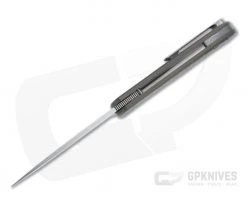 Handle: Matte blasted and anodized bronze, the streamlined titanium handle is chamfered for a comfortable, secure grip that is easy to carry. Damasteel pivot collars, back spacer, pocket clip and handle inlay offer a stunning upgrade for eye-catching style. The robust integral titanium Slab Frame Lock is equipped with a hardened steel lock face insert for smooth operation, rock solid lockup and secure operation for the life of the knife. Ships in a zippered nylon pouch with Certificate of Authenticity.