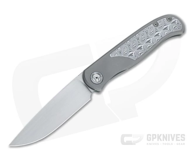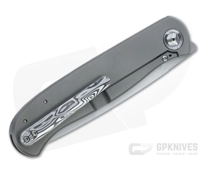 Burger Custom Atlas SFL Drop Point Satin M390 Damasteel Gray Frame Lock Front Flipper 4567