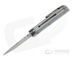 Damasteel: A high hardness, high corrosion resistant steel that combines two martensitic stainless steels – RWL34 and PMC27 – in unique patterns that, when etched, create the designs seen in the blade. Damasteel delivers a blade that is very eye-catching and has performance in the realm of RWL34, similar to CPM154.