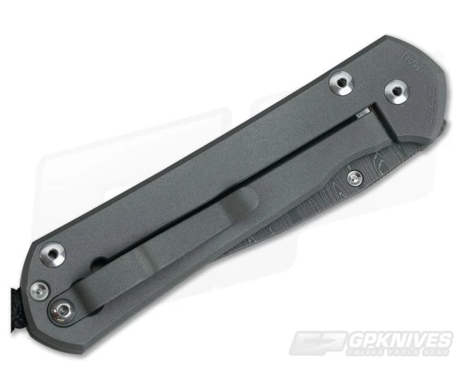 The Blade: The Large version gives its user 3.5 inches of polished, shaving sharp cutting edge built from premium Devin Thomas stainless Ladder damascus steel. It is hollow ground for supreme sharpness and fully usable for day to day. A thumb ramp on the spine has perfect jimping, nearly an inch and perfect placement. The rest of the spine is crowned, smooth and polished. This version features a single Silver titanium thumb lug opener allowing the user to open the blade from the front side. It operates on a pivot system using oversized bronze washers with grease-filled pockets for smooth, no friction operation. Lock up is always solid and reliable.