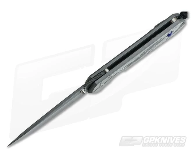 Fresh from Chris Reeve Knives this Damascus Large Sebenza 21 is outfitted with a “Reverse Silver Contrast” Unique Graphic and absolutely stunning Blue Star Sapphire cabochon. Its front slab features a one-of-a-kind design complete with waves of contrasting silver textures and a Star Sapphire Cabochon inlay accent. This stunner is brand new direct from Chris Reeve Knives.