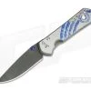 Blade: The Small version gives its user 2.87 inches of polished, shaving sharp cutting edge built from premium Chad Nichols stainless Raindrop Damascus steel. It is hollow ground for supreme sharpness and fully usable for day to day. A thumb ramp on the spine has perfect jimping, nearly an inch and perfect placement. The rest of the spine is crowned, smooth and polished. This version features a single silver titanium thumb lug opener allowing the user to open the blade from the front side. It operates on a pivot system using oversize bronze washers with grease-filled pockets for smooth, no friction operation. Lock up is always solid and reliable.