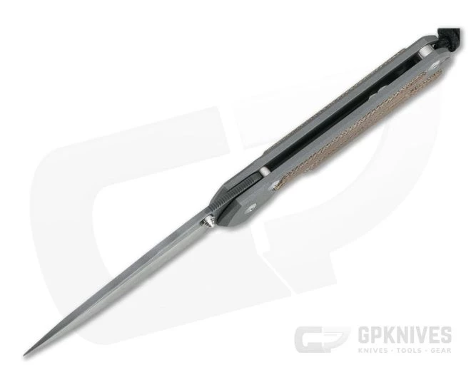 The Chris Reeve Large Sebenza 21 is now available with a Natural Canvas Micarta inlaid titanium handle and premium, Chad Nichols Stainless Damascus in Raindrop pattern. Handsome and rugged, the Micarta inlays offer added traction and a stylish look. Blasted gray titanium provides a nice contrast to the warm tones of the inlays while the rest of the construction is standard Chris Reeve: perfection.