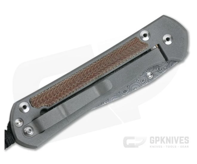 Blade: The razor sharp stainless Damascus blade opens effortlessly via a single titanium thumb stud. The blade has been acid etched to bring out the striking pattern of the differing welded steels for a very classy look. A shallow hollow grind slices superbly, offering 3.5 inches of fine cutting edge, with the utilitarian drop point being a great general use profile. The Stainless Damascus offers visual appeal with modern stainless steel performance.