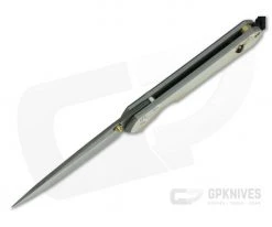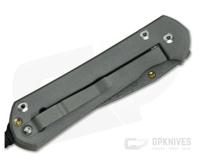 Blade: The razor sharp, stainless Nichols Raindrop Damascus blade opens effortlessly via a single gold anodized thumb stud. It is hollow ground for supreme sharpness and fully usable for day to day. A thumb ramp on the spine has perfect jimping, nearly an inch and excellent placement. The rest of the spine is crowned and smooth. This version features a single Gold titanium thumb lug opener allowing the user to open the blade from the front side. It operates on a pivot system using oversize bronze washers with grease-filled pockets for smooth, no friction operation.