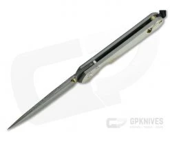 Blade: The razor sharp, Thomas Basketweave stainless Damascus blade opens effortlessly via a single gold anodized thumb stud. It is hollow ground for supreme sharpness and fully usable for day to day. A thumb ramp on the spine has perfect jimping, nearly an inch and excellent placement. The rest of the spine is crowned and smooth. This version features a single Gold titanium thumb lug opener allowing the user to open the blade from the front side. It operates on a pivot system using oversize bronze washers with grease-filled pockets for smooth, no friction operation.