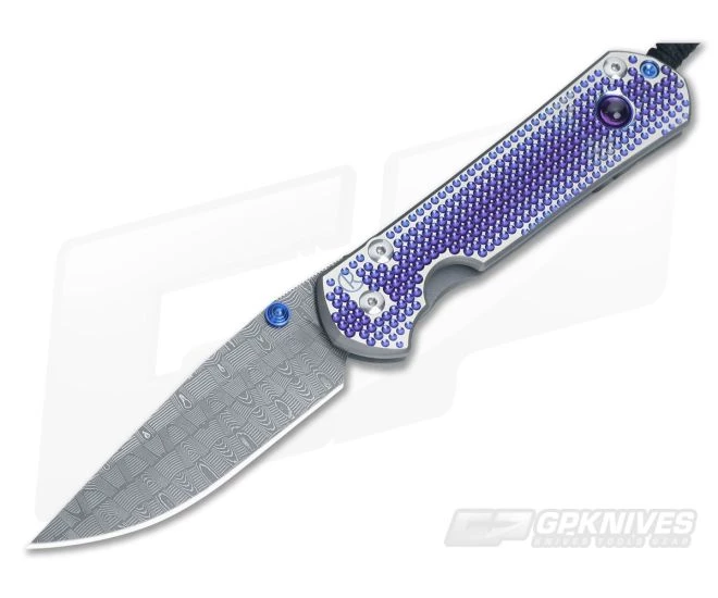 Chris Reeve Large Sebenza 21 Unique Graphic featuring a purple anodized droplet pattern is a one-of-a-kind piece that will appeal to the Chris Reeve users and collectors alike. The colorful pattern and Amethyst cabochon is more than eye-catching and it also adds a touch of texture to the front scale. This unique also features a stunning basket weave damascus blade to compliment the vibrant handle. Brand new directly from Chris Reeve Knives.
