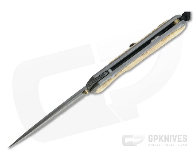 The Sebenza 31 is not a completely new model, but rather an update to the time-tested and proven design of the classic Sebenza 21. The Sebenza 31 has updated features including: Ceramic Ball Interface from the Umnumzaan/Inkosi, off-set clip design, improved ergonomics, removal of fixturing hole on front handle, re-designed inlays (select models) and tighter tolerances thanks to improved machining processes. Sebenza means “work” in Zulu and the model 31 will see plenty of work as it is built with heirloom quality to last. This version comes with a Chad Nichols Boomerang Damascus stainless steel blade and satin titanium handles with Box Elder inlays.