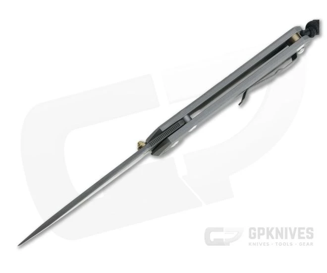 Handle: The front slab of 6AL4V titanium is beautifully polished, carved and anodized in a unique pattern with a cabochon jewel inlay while the frame lock side is finished in the standard sandblasted finish for traction. The Reeve Integral Lock utilizes the titanium frame to deliver “bank vault” like lockup. An upgraded Ceramic Ball Interface increases the reliability and life of the lock while offering an extra smooth operation of both lock and blade. The construction is completed with full titanium hardware including a titanium spacer and lanyard pin. A black nylon lanyard comes installed. DOB: August 27, 2020.