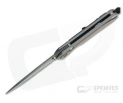 Handle: The dual slabs of 6AL4V titanium are satin finished and inlaid with Macassar Ebony wood. The front inlay is a large, single piece that lends a sleek elegance to the clean design. The Reeve Integral Lock utilizes the titanium frame to deliver “bank vault” like lockup. An upgraded Ceramic Ball Interface increases the reliability and life of the lock while offering an extra smooth operation of both lock and blade. The construction is completed with full titanium hardware including a gold anodized spacer and lanyard pin. A black nylon lanyard comes installed.
