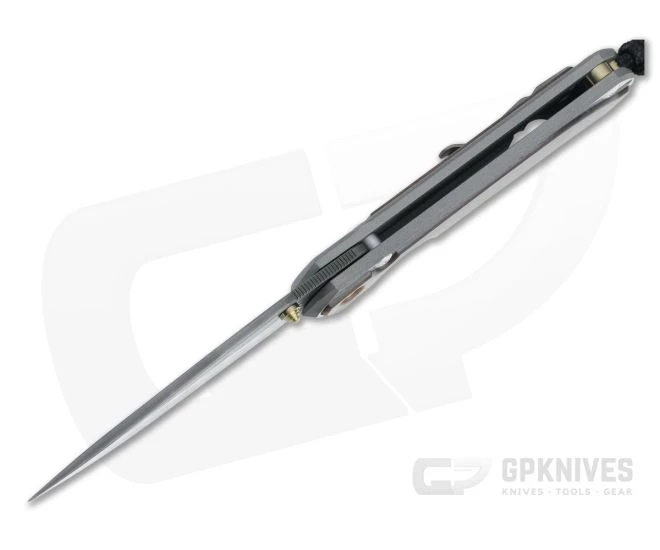 Handle: The dual slabs of 6AL4V titanium are satin finished and inlaid with Macassar Ebony wood. The front inlay is a large, single piece that lends a sleek elegance to the clean design. The Reeve Integral Lock utilizes the titanium frame to deliver “bank vault” like lockup. An upgraded Ceramic Ball Interface increases the reliability and life of the lock while offering an extra smooth operation of both lock and blade. The construction is completed with full titanium hardware including a gold anodized spacer and lanyard pin. Included is a single tube of fluorinated grease, microfiber cloth, information packet and installed black nylon lanyard.