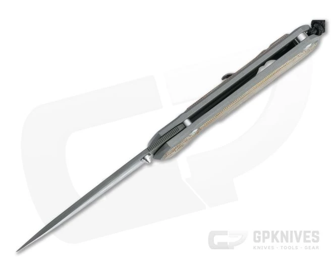 Handle: Matte gray blasted 6AL4V titanium handle slabs have a subtle texture and develop a unique patina with time and carry. The front Micarta inlay is a large, single piece that lends a sleek aesthetic to the design while the Ceramic Ball Interface equipped Reeve Integral Lock provides “bank vault” lockup with increased reliability and lock life. Includes a tube of fluorinated grease, microfiber cloth, leather slip pouch, and information packet.