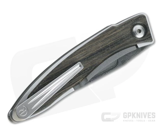The Chris Reeve Mnandi is the benchmark of high-end production gentleman’s knives. Precision fit and finish along with top-of-the-line materials make this compact folder an ideal dress or gentleman’s carry knife. This version comes with a Nichols Stainless Raindrop Damascus steel blade and titanium handles with Bog Oak inlays.