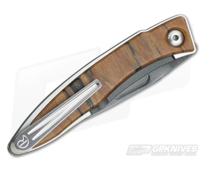 The Handle: Exquisitely handsome spalted beech wood scales have been inlaid into the titanium handles on the front and back of the knife. Fit and finish on this timeless classic is outstanding. Optimum reliability with quality materials make the ideal gentleman’s carry.