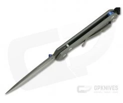 Handle: Two slabs of matte gray, sandblasted titanium form the handles with chamfered edges for a smooth, comfortable grip for small to medium sized hands. Forward cutouts allow the user access to the Reeve Integral Frame Lock mechanism and a comfortable place for fingers to rest. The lock is reliable, easy to use and virtually maintenance free. Construction is completed with all titanium hardware including a blue anodized barrel spacer with matching lanyard spacer. Includes: One tube of fluorinated grease, Allen wrench, microfiber cloth, small pocket pouch and information packet.