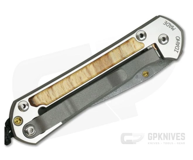 This Chris Reeve Small Sebenza 21 features a Spalted Beech wood inlaid titanium handle and premium Chad Nichols stainless Raindrop Damascus blade. Now discontinued from the Wood inlay lineup, Spalted Beech offers visually stunning character of contrasting light and dark wood tones with an occasional mammoth-like appearance. Available while supplies last. The Nichols stainless Raindrop Damascus blade makes this a truly unique piece for your collection.