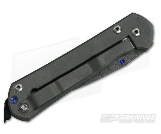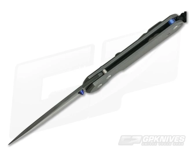 Handle: Two thick slabs of titanium feature chamfered edges for a smooth, comfortable grip. Forward cutouts allow the user access to the frame locking mechanism and a comfortable place for fingers to rest. Both pieces are entirely sandblasted creating a matte grey appearance with very fine texturing. The grip is welcoming in the majority of small to medium sized hands. The Integral Frame Lock was created by Mr. Chris Reeve and continues to be a staple in the knife making industry. It’s reliable, easy to use and virtually maintenance free. All titanium hardware comes standard on the Sebenza including the Blue anodized barrel spacer and lanyard-attached spacer at the end. A titanium pocket clip is attached to the back for tip up right hand carry. It can be easily removed with the supplied Allen wrench. Also included is a single tube of fluorinated grease, microfiber cloth, small pocket pouch and information packet.