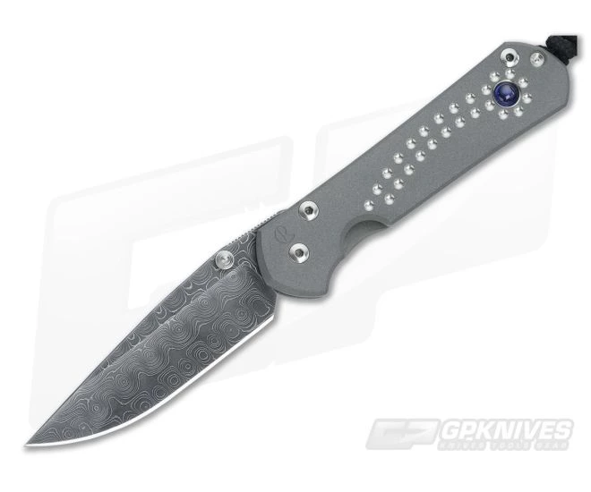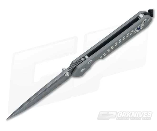 The Blade: Layered, machined Devin Thomas stainless Raindrop Damascus blade opens effortlessly via its titanium double thumb lugs. The damascus is super sharp and compliments the handle nicely.