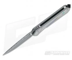 The Blade: Layered, machined Devin Thomas stainless Basket Weave Damascus blade opens effortlessly via its single silver titanium thumb lug. The damascus has a polished edge and compliments the handle nicely.
