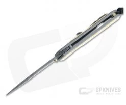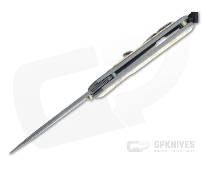 Blade: The small Sebenza 31 delivers just under three inches of polished, shaving sharp cutting edge on the Boomerang Damascus drop point blade. The deep hollow grind offers exceptional slicing performance and extended life through sharpening and use. The Damascus blade is etched to showcase the stunning Boomerang pattern of the layered steels while the jimped thumb ramp offers traction and comfort. The rest of the spine is crowned smooth for a custom feel. A single gold anodized titanium thumb lug allows the right-handed user to open and operate the blade easily. It moves on a pivot system using oversize bronze washers with grease-filled pockets for a smooth, hydraulic operation.