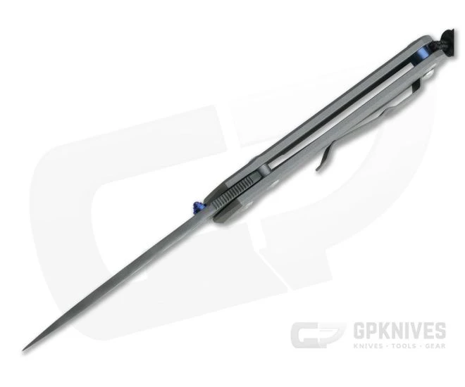 Handle: The dual slabs of 6AL4V titanium are sandblasted for a nice, tactile feel that will develop a unique patina with wear over time. The Reeve Integral Lock utilizes the titanium frame to deliver “bank vault” like lockup. An upgraded Ceramic Ball Interface increases the reliability and life of the lock while offering an extra smooth operation of both lock and blade. The construction is completed with full titanium hardware including a blue anodized spacer and lanyard pin. A black nylon lanyard comes installed.