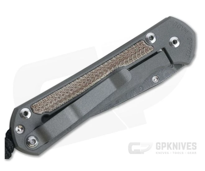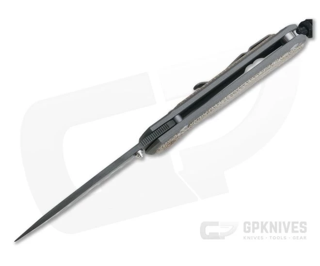The Sebenza 31 is not a completely new model, but rather an update to the time-tested and proven design of the classic Sebenza 21. The Sebenza 31 has updated features including: Ceramic Ball Interface from the Umnumzaan/Inkosi, off-set clip design, improved ergonomics, removal of fixturing hole on front handle, re-designed inlays (select models) and tighter tolerances thanks to improved machining processes. Sebenza means “work” in Zulu and the model 31 will see plenty of work as it is built with heirloom quality to last. This version comes with a Chad Nichols Stainless Raindrop Damascus drop point blade and blasted titanium handles with Natural Canvas Micarta inlays.