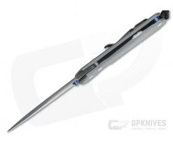Handle: The dual slabs of 6AL4V titanium are sandblasted for a nice, tactile feel that will develop a unique patina with wear over time. The Reeve Integral Lock utilizes the titanium frame to deliver “bank vault” like lockup. An upgraded Ceramic Ball Interface increases the reliability and life of the lock while offering an extra smooth operation of both lock and blade. The construction is completed with full titanium hardware including a blue anodized spacer and lanyard pin. A black nylon lanyard comes installed.