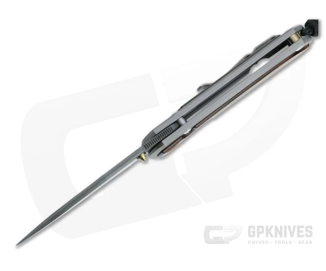 The Sebenza 31 is an update to the time-tested and proven design of the classic Sebenza 21. Updated features include a Ceramic Ball Interface frame lock, off-set clip, improved ergonomics, full front inlay and tighter tolerances from improved machining processes. Sebenza means “work” in Zulu, and the heirloom quality model 31 will see plenty of work over its lifetime. This small version comes with a Chad Nichols stainless Raindrop Damascus drop point blade and glass bead-blasted titanium handles with Macassar ebony wood inlays.