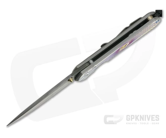 The Sebenza 31 is not a completely new model, but rather an update to the time-tested and proven design of the classic Sebenza 21. The Sebenza 31 has updated features including: Ceramic Ball Interface from the Umnumzaan/Inkosi, off-set clip design, improved ergonomics, removal of fixturing hole on front handle, re-designed inlays (select models) and tighter tolerances thanks to improved machining processes. Sebenza means “work” in Zulu and the model 31 will see plenty of work as it is built with heirloom quality to last. This version comes with a Chad Nichols Stainless Boomerang Damascus drop point blade and Unique Graphic titanium handles.