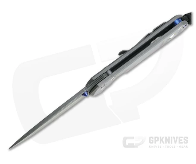 Handle: The front slab of 6AL4V titanium is beautifully polished with a unique Night Sky scene carved and anodized into the handle with a Mother of Pearl cabochon inlay serving as the full moon while the frame lock side is finished in the standard sandblasted finish for traction. The Reeve Integral Lock utilizes the titanium frame to deliver “bank vault” like lockup. An upgraded Ceramic Ball Interface increases the reliability and life of the lock while offering an extra smooth operation of both lock and blade. The construction is completed with full titanium hardware including a blue anodized spacer and lanyard pin. A black nylon lanyard comes installed.