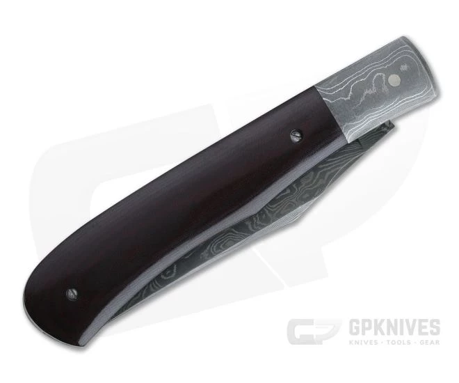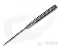 Blade: Hawes hand forged Damascus combines 180 layers of 1080, 5160 and 15n20 high carbon steels creating a unique Burl pattern. The classic Trapper clip point blade is opened with a single nail nick from the front and comes with a razor sharp convex grind. File work along the length of the spine of the blade adds traction and a custom feel. Opening is smooth with a solid half stop and a moderate back spring strength.