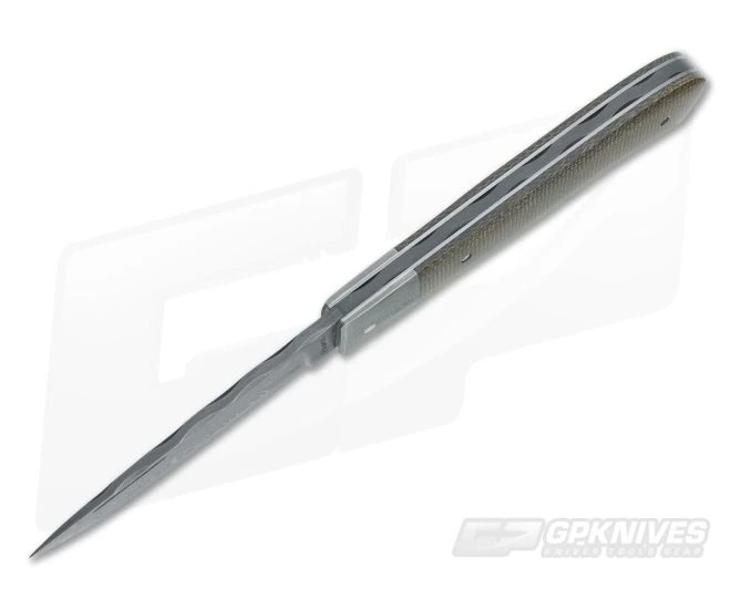 The Chuck Hawes Custom Remington is a traditional slip joint design made in the traditional way. Handsome green micarta handle scales meet with damascus bolsters for a classic appearance while also housing the hand forged damascus blade. Includes soft-sided zipper pouch for safe keeping.