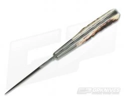 The Chuck Hawes Custom Trapper is a classic slip joint design made in the traditional fashion. Rugged Sambar Stag handle scales are flush fit to Damascus bolsters on stainless steel liners for a classic appearance. The handles house a single hand forged Burl Damascus blade.